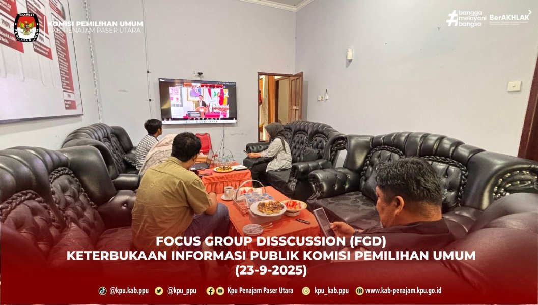 KPU Penajam Paser Utara Ikuti FGD Keterbukaan Informasi Publik yang Digelar KPU RI Secara Daring Penajam, 23 September 2025 — Komisi Pemilihan Umum (KPU) Kabupaten Penajam Paser Utara turut serta dalam kegiatan Forum Group Discussion (FGD) tentang Keterbukaan Informasi Publik yang diselenggarakan secara daring oleh KPU Republik Indonesia pada Selasa, 23 September 2025. Kegiatan ini diikuti oleh seluruh KPU Provinsi dan kabupaten/kota se-Indonesia sebagai bagian dari upaya memperkuat transparansi dan akuntabilitas dalam penyelenggaraan pemilu dan pemilihan. Melalui kegiatan ini, diharapkan seluruh jajaran KPU di berbagai tingkatan dapat memperkuat koordinasi dan meningkatkan kapasitas dalam menjalankan tugas sebagai badan publik yang informatif. #KPUMelayani ....