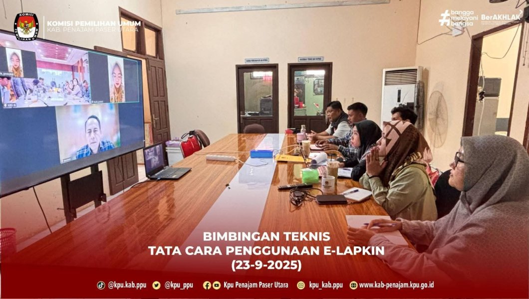 KPU Penajam Paser Utara Ikuti Bimtek Penginputan E-Lapkin Secara Daring Bersama KPU RI Penajam, 23 September 2025 — Komisi Pemilihan Umum (KPU) Kabupaten Penajam Paser Utara mengikuti kegiatan Bimbingan Teknis (Bimtek) terkait Tata Cara Penginputan Elektronik Laporan Kinerja (E-Lapkin) yang diselenggarakan oleh KPU Republik Indonesia pada hari Selasa, 23 September 2025. Kegiatan ini dilaksanakan secara daring melalui Zoom meeting. Bimbingan teknis ini bertujuan untuk meningkatkan pemahaman dan kemampuan teknis jajaran KPU daerah dalam melakukan penginputan data kinerja secara elektronik melalui sistem E-Lapkin yang telah ditetapkan oleh KPU RI. KPU Penajam Paser Utara mengapresiasi kegiatan ini sebagai bentuk dukungan KPU RI dalam memperkuat sistem pelaporan kinerja yang efisien, terstandar, dan berbasis teknologi informasi. Dengan adanya kegiatan ini, diharapkan seluruh KPU di tingkat provinsi dan kabupaten/kota mampu melaksanakan pelaporan kinerja secara lebih akurat dan sesuai ketentuan, demi mendukung tata kelola kelembagaan yang profesional dan transparan. #KPUmelayani ....