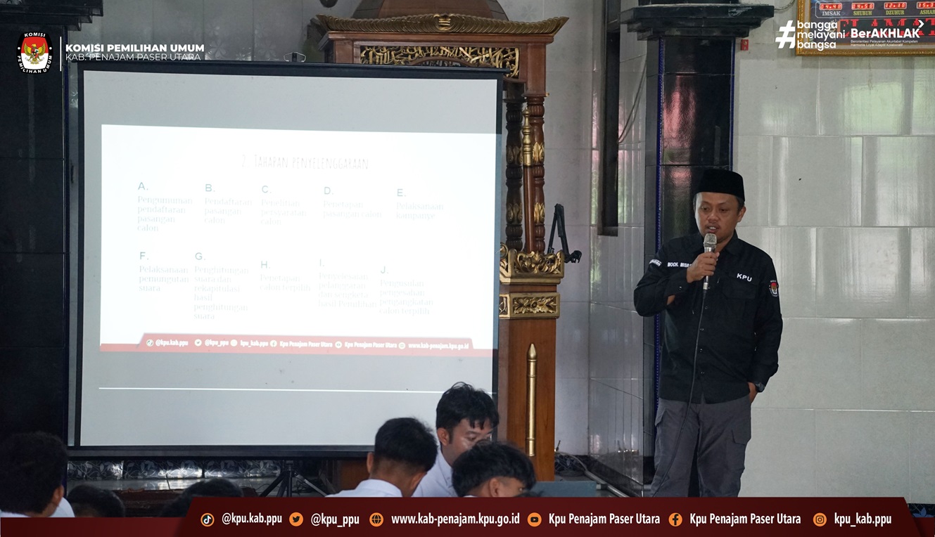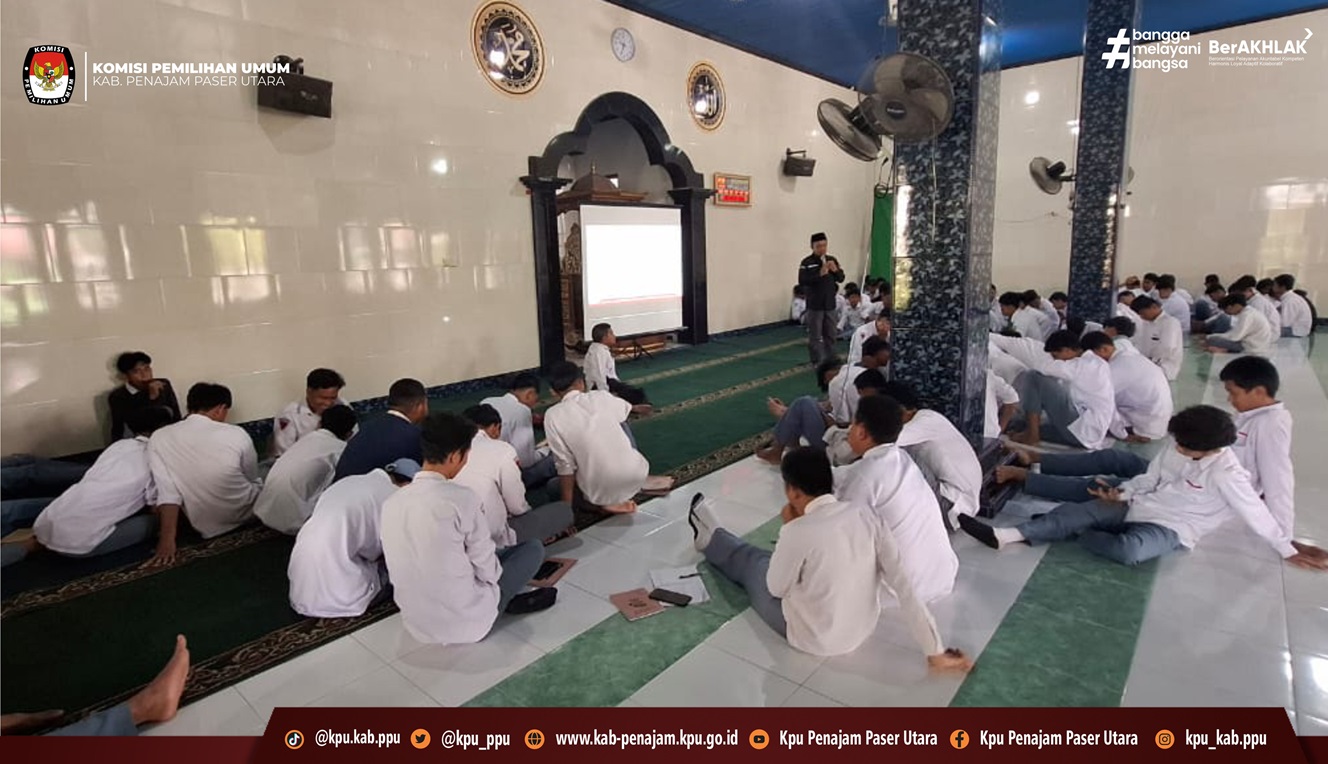 Penajam – Dalam rangka meningkatkan pemahaman demokrasi di kalangan pemilih pemula, Anggota Komisi Pemilihan Umum (KPU) Kabupaten Penajam Paser Utara, Bapak Mochamad Misran, menghadiri undangan Madrasah Aliyah Negeri (MAN) Penajam Paser Utara pada kegiatan Kokurikuler Suara Demokrasi Tahun Ajaran 2024/2025, Selasa (25/8/2025).