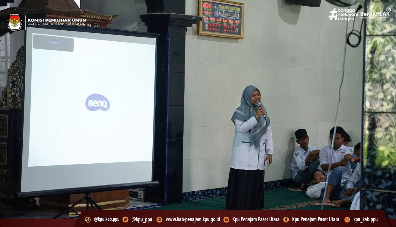 Kegiatan yang berlangsung di halaman MAN Penajam Kecamatan Babulu tersebut menghadirkan Anggota KPU PPU Bapak Mochamad Misran sebagai pemateri dengan topik “Sosialisasi Tata Cara Pemilu”.