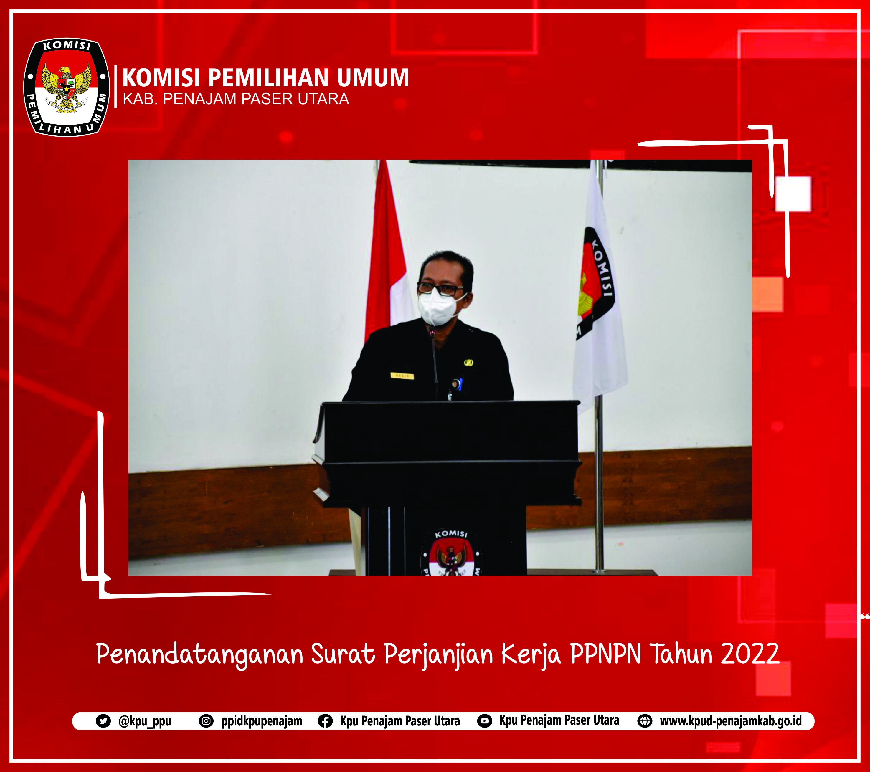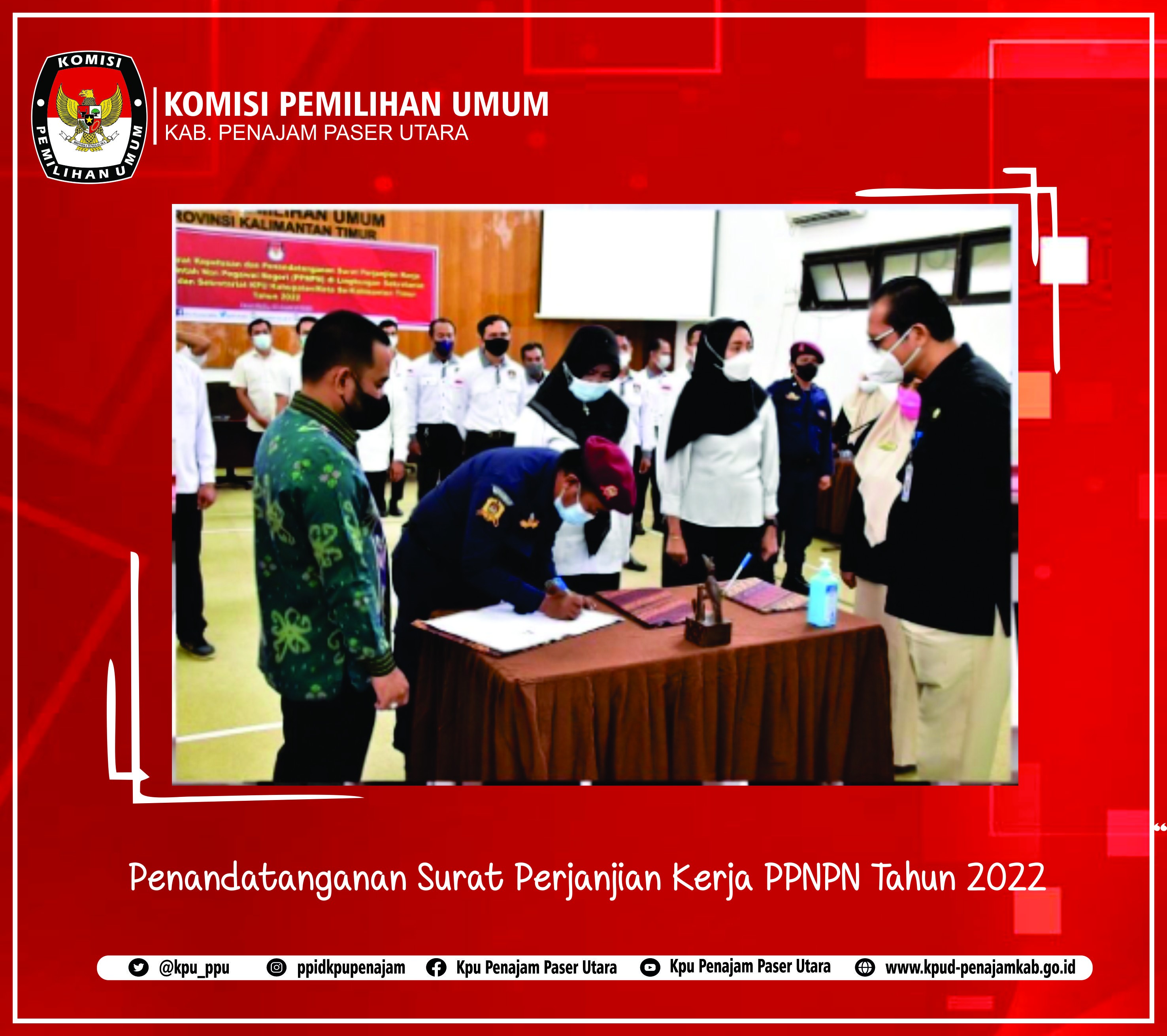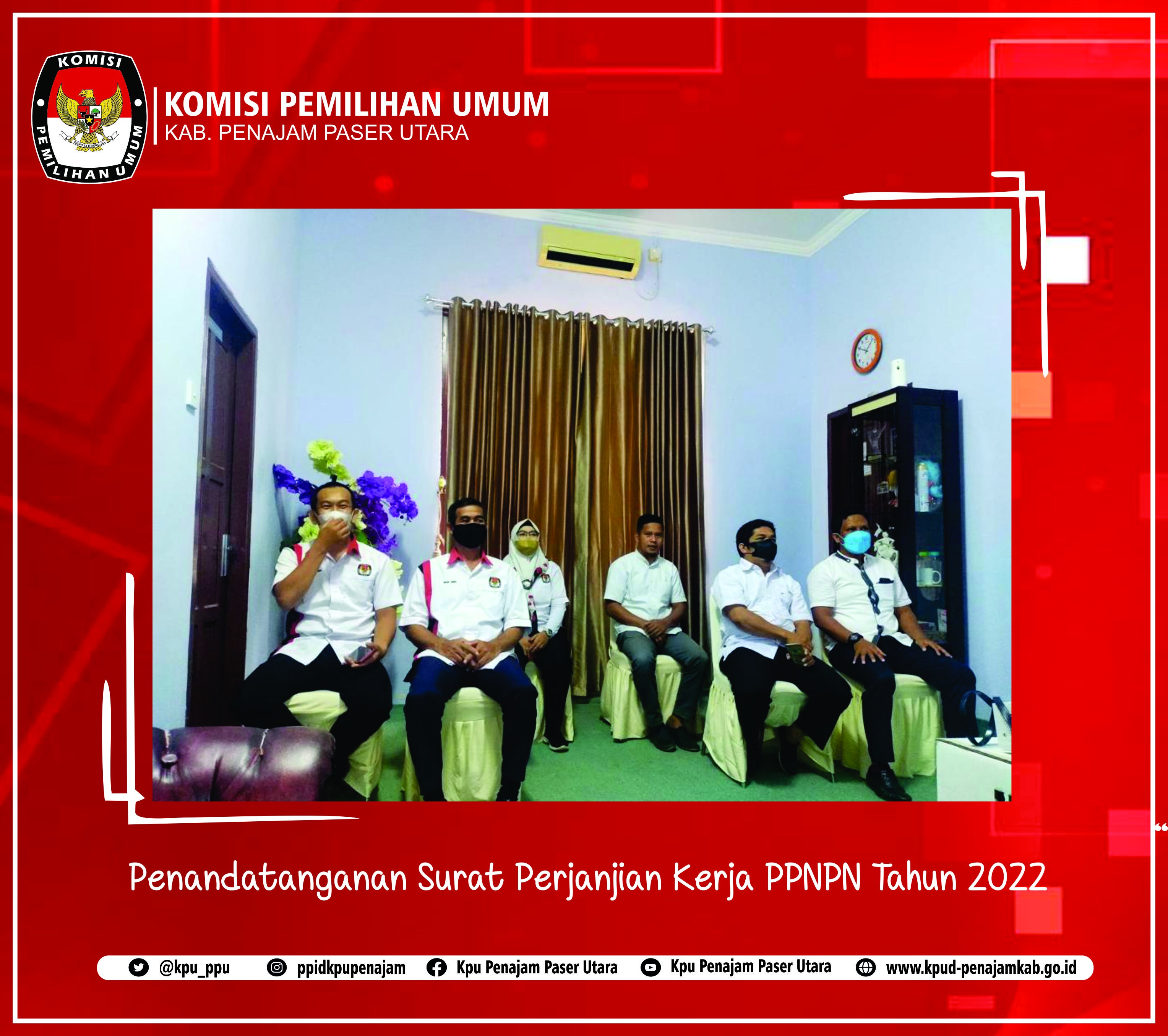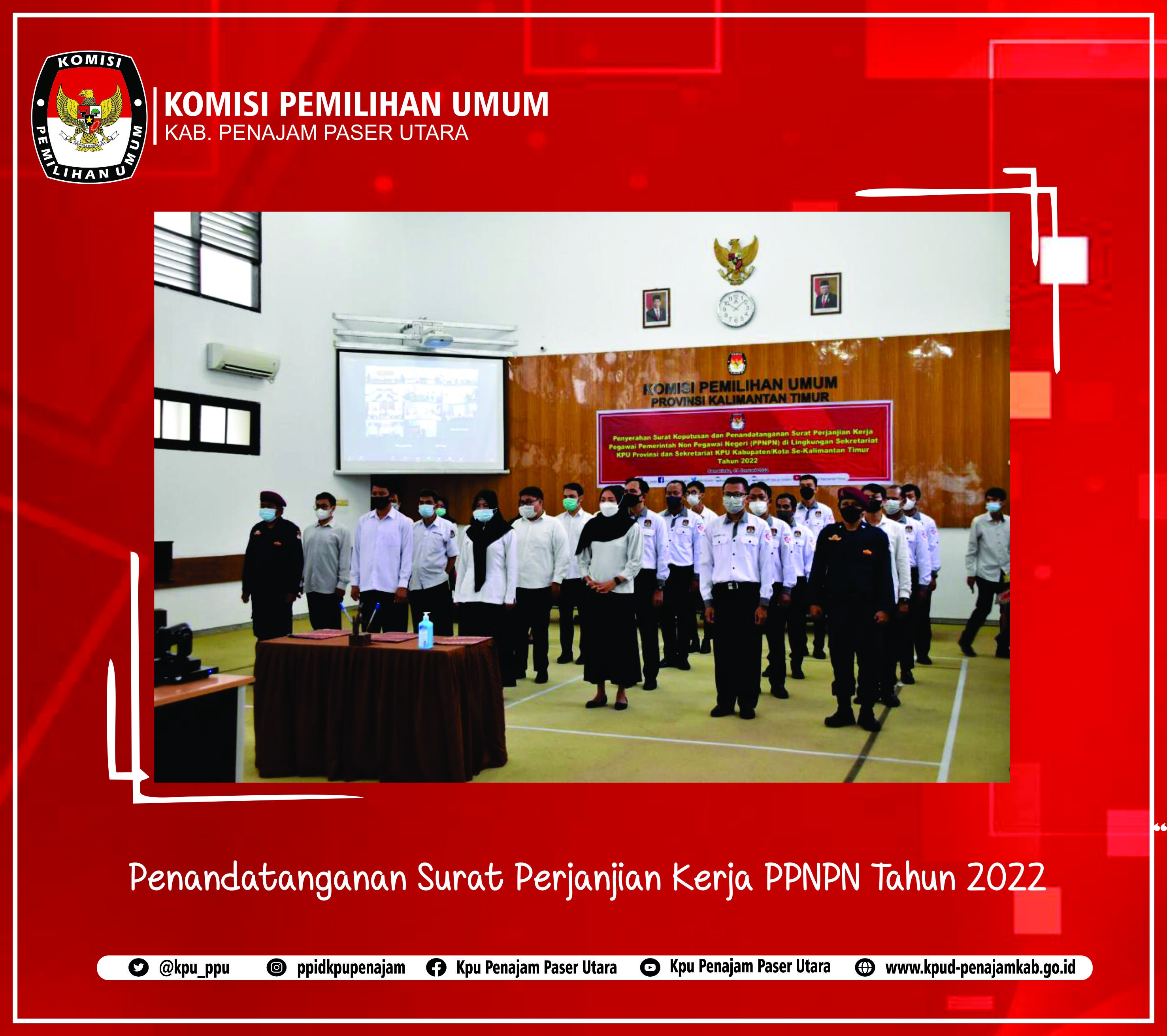 PenajamKPUD - Pegawai Pemerintah Non Pegawai Negeri (PPNPN) Komisi Pemilihan Umum Penajam Paser Utara Rabu, 19/01/2022 mengikuti Acara Penandatangan Surat Perjanjian Kerja PPNPN Tahun 2022 dengan Pejabat Pembuat Komitmen Sekretariat KPU Provinsi Kalimantan Timur secara daring, acara yang disaksikan oleh Ketua KPU Provinsi Kalimantan Timur, Rudiansyah, S.E. serta Sekretaris KPU Provinsi Kalimantan Timur, Basir, S.Pi., M.Si. Acara yang dilakukan berupa penyerahkan SK secara simbolis kepada PPNPN Tahun 2022.